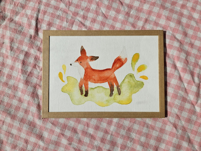 Illustration originale unique à l'aquarelle d'un renard coloré